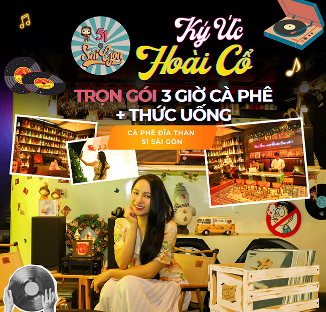 – Áp dụng cho: Vé trọn gói tất cả các dịch vụ tại Cà Phê Đĩa Than 51 Sài Gòn trong 3 giờ (trừ tầng shop đĩa than), khách hàng trải nghiệm những câu chuyện hoài cổ, văn hóa Việt Nam, cảm giác như được về nhà). Với mong muốn mang tới nhiều trải nghiệm về thiết bị nghe nhạc cho khách hàng, không giống như những quán cà phê bình thường dùng 1 hệ thống loa duy nhất đồng bộ cho tất cả các tầng thì ở 51 Sài Gòn, mỗi tầng là 1 chiếc loa khác nhau, với dòng loa mang thiết kế đặc trưng cho những ai chơi đồ vintage như Marshall, fender, JBL,… Các dịch vụ gồm: