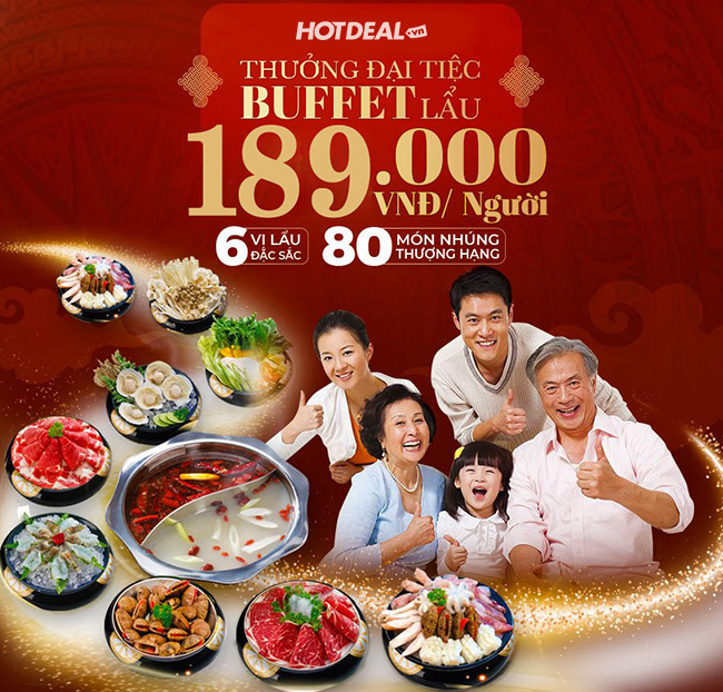 1/ Buffet lẩu trưa thứ 2 đến thứ 6 ưu đãi giảm chỉ còn 189.000đ (giá gốc 249.000đ).