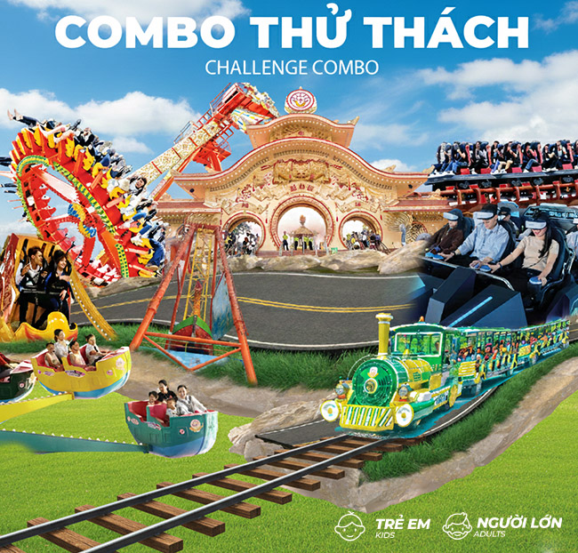 3. Combo Thử Thách (Challenge Combo): Vé Cổng + Xe Lửa + Đĩa Bay Hành Tinh Lạ + Tàu Lượn Siêu Tốc + Vòng Xoay Vũ Trụ + Khám Phá Vũ Trụ Huyền Bí + Thuyền Bay hoặc Thuyền Rồng