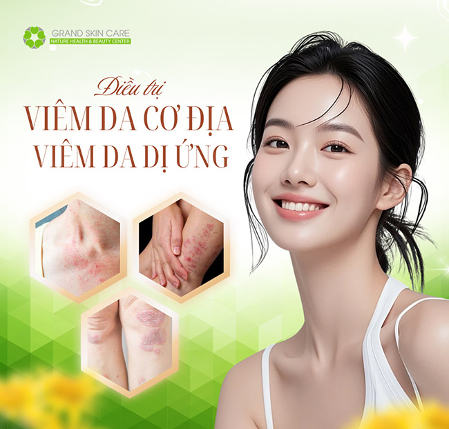 – Voucher áp dụng cho gói dịch vụ Điều trị viêm da cơ địa và viêm da dị ứng công nghệ sóng siêu âm đa tầng kết hợp tế bào gốc thực vật – Hiệu quả ngay sau 01 lần thực hiện – Miễn Tip tại Grand Skin Care.